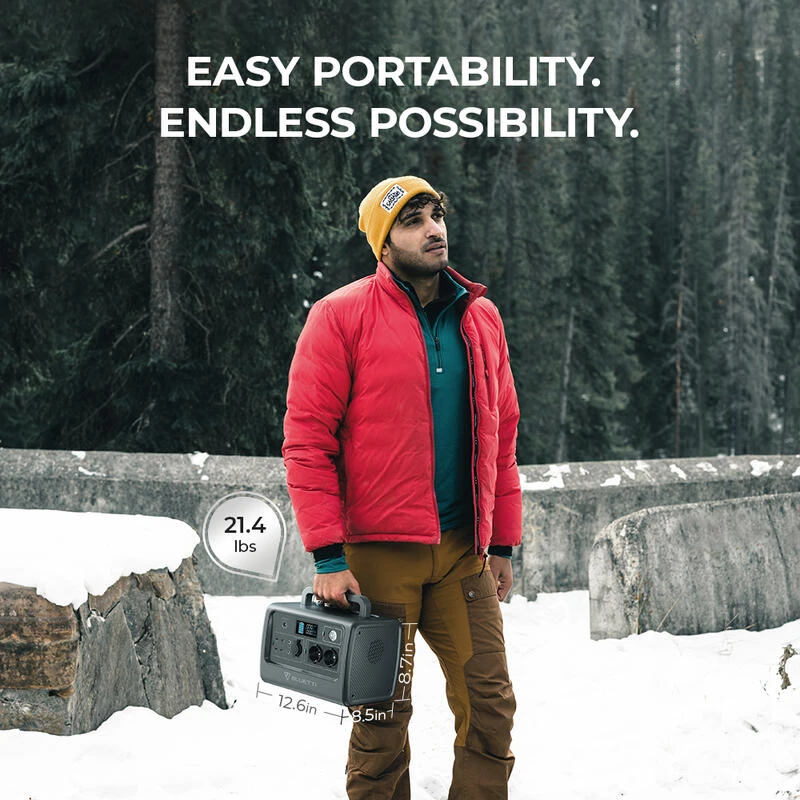 Le kit de générateur solaire EB70+PV120 comprend une batterie LiFePO4 de 716 Wh et un panneau solaire de 120 W – assez pour alimenter vos essentiels sur la route ou pendant les pannes de courant.