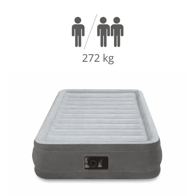 L’Intex Comfort-Plush ‘Queen’ en combinaison avec le kit de réparation. Dans le cas peu probable d’un trou dans le lit gonflable, celui-ci peut être réparé rapidement et facilement.