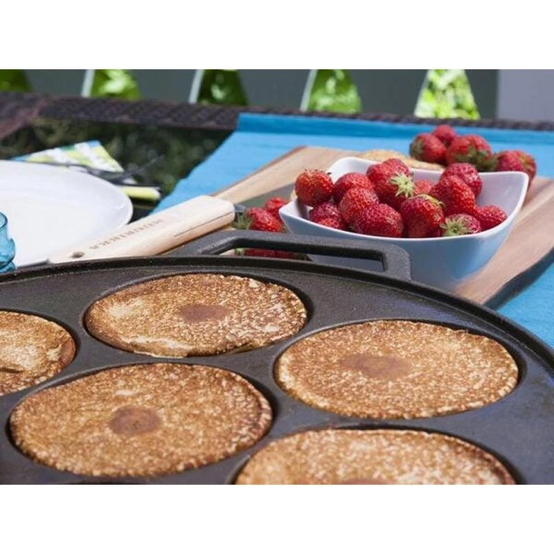 Le Muurikka Pan multifonction est un outil pratique pour préparer toutes sortes de plats. Parfait pour des crêpes, blinis, omelettes, œufs, viandes, poissons ou légumes.