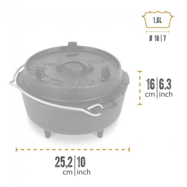 Une magnifique marmite Petromax 3QT, conçue avec force et précision. Capacité de 2,3L. Livré avec un couvercle professionnel – un ensemble idéal !