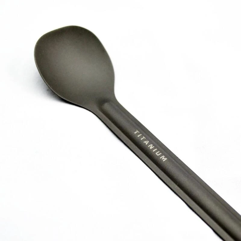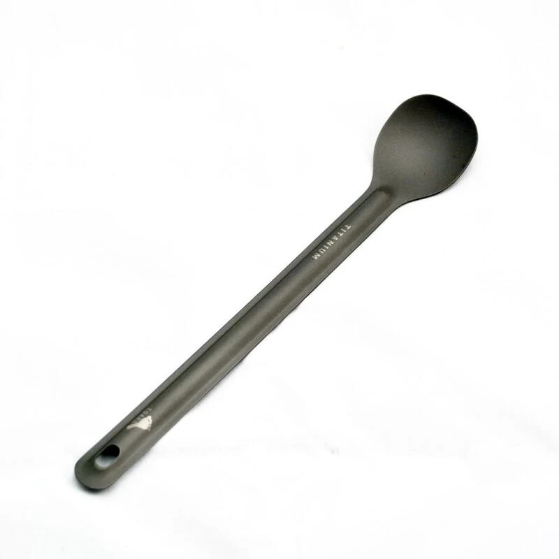 Cette cuillère en titane légère de Toaks avec une longue poignée est forte, facile à entretenir et inclut un sac en nylon. Parfaite pour toutes les activités en plein air !